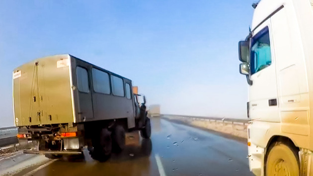 Мчащаяся фура увернулась от грузовиков за секунду до столкновения