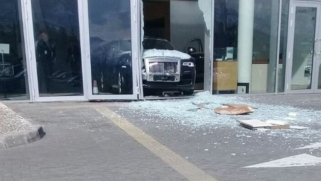 В Алматы Rolls Royce Ghost пробил витрину шоу-рума