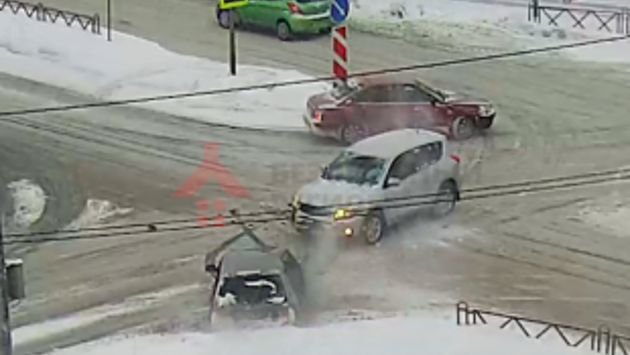 Авария произошла днем в понедельник, 5 марта. Два легковых автомобиля столкнулись на перекрестке. В результате сильного удара одну из машин вынесло на тротуар. Обе легковушки серьезно повреждены. Кадры аварии попали в камеры наружного наблюдения. Сейчас информация по ДТП уточняется.