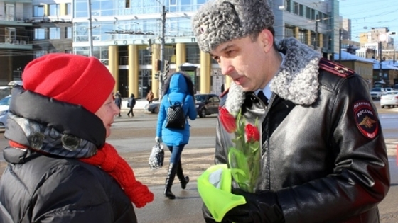 Сотрудники ГИБДД подарили «автоледи» весеннее настроение