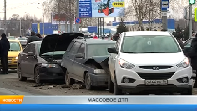 ДТП с участием сразу четырёх автомобилей произошло в Рыбинске. Там столкнулись «Хёндай», ВАЗ, «Хонда» и «Фольксваген». — Водитель ВАЗа не успел затормозить и врезался в «Хёндай». Сзади в отечественную машину въехала «Хонда», — передаёт телеканал «Рыбинск-40». «Хёндай» спереди задел «Фольксваген», который, видимо, не рассчитал траекторию, объезжая аварию. Три машины получили серьёзные повреждения. А вот люди, к счастью, не пострадали. Сотрудники ГИБДД выясняют обстоятельства ДТП. За последние дни в Ярославской области произошло несколько серьёзных аварий. А вчера вечером на трассе М-8 пешехода раздавил грузовик.