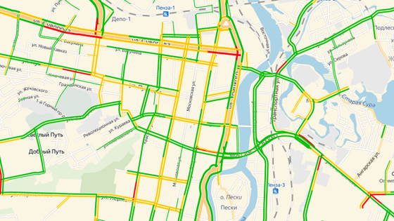 По данным сервиса Яндекс.Карты, утром на дорогах Пензы серьезно затруднено дорожное движение. На въезде в город автомобилисты испытывают трудности на улице Антонова в районе пересечения с улицей Измайлова. Небольшой затор образовался на Транспортной улице при выезде на Бакунинский мост – средняя скорость движения на этом участке составляет 7 км/ч. Пробка скопилась в районе Центрального рынка – автомобилисты испытывают трудности на пересечении улицы Суворова и Толстовского путепровода. Образовался затор на улице Пушкина при движении в сторону центра города – пробка начинается от пересечения с улицей Кулакова. Не удастся быстро проехать на перекрестке улицы Суворова и Толстовского путепровода – средняя скорость движения транспортного потока на этом участке не превышает 7 км/ч. Немного затруднено движение на Красной улице в сторону улицы Лермонтова. По возможности ищите пути объезда. В районе Западной Поляны автомобилисты стоят на Ленинградской улице на перекрестке с улицей Лермонтова. Скорость движения на этом участке составляет 7 км/ч. Традиционная для утренних часов пробка скопилась на улице Терновского при движении в сторону центра. Затор начинается от пересечения с Ростовской улицей.