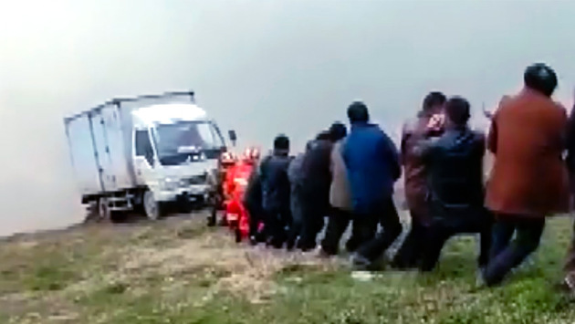 По крайней мере вытащить грузовик из реки - раз плюнуть. Китайский водитель отчаялся, когда его авто съехало в воду, поскольку рядом не было спецтехники, которая могла бы помочь. Но вместо спецтехники из соседней деревне пришли несколько десятков жителей, которые вытащили грузовик за 10 минут. Сила в единстве. Ну и в огромной плотности населения.