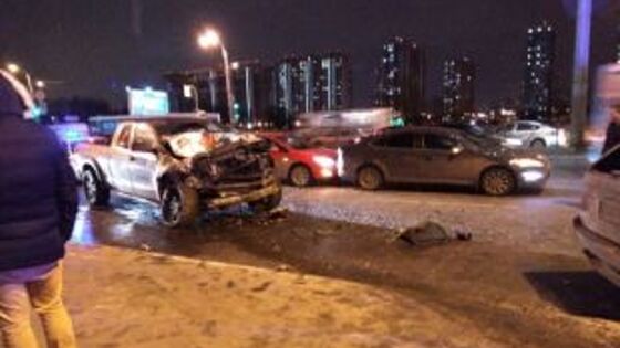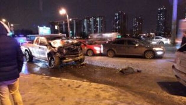 На проспекте Славы водитель пикапа влетел в маршрутку, задев три авто
