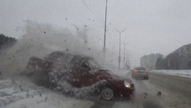 Автомобильный регистратор запечатлел момент аварии, произошедшей в минувшую пятницу, 16 марта, на улице 40 лет Победы в Ижевске. Водитель легкового автомобиля попытался избежать столкновения с авто, попавшее в аварию прямо перед ним. Ему это удалось, однако он потерял контроль над своим транспортным средством и вылетел на полосу встречного движения, где находилась машина, из которой велась съемка. Автор видео не ожидал подобного развития событий и не успел ничего предпринять. В итоге он протаранил внезапно появившуюся перед ним "Ладу". О пострадавших в ДТП не сообщается.
