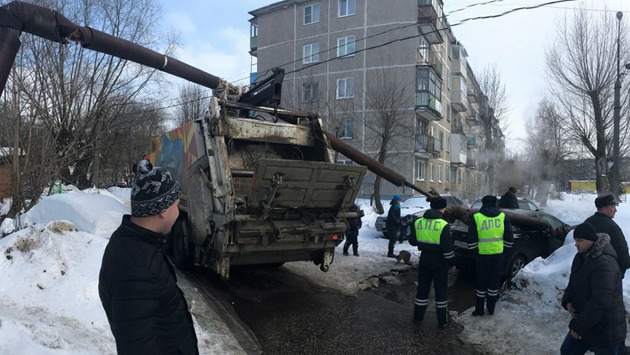 Во Владимире мусоровоз снес трубу отопления – вода залила иномарку