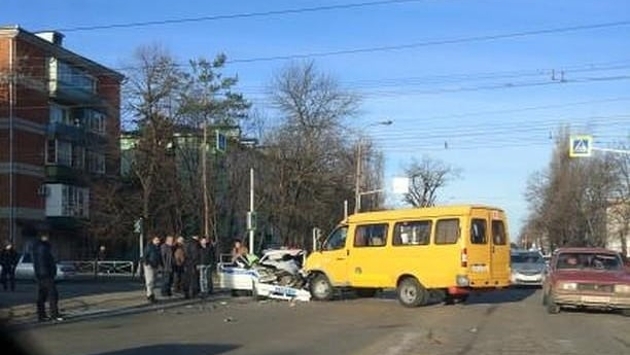 В Майкопе маршрутка столкнулась с автомобилем ДПС (видео)