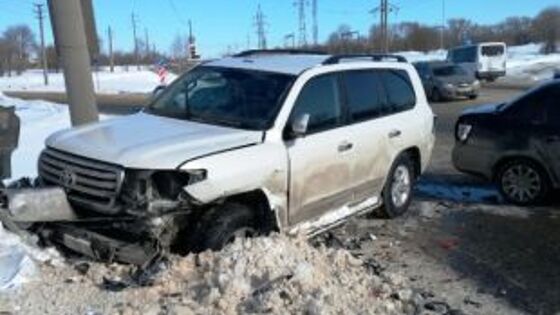 В Тольятти Toyota Land Cruiser протаранила «Гранту» и врезалась в столб