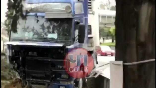 Очевидцы: водитель уснул за рулем большегруза в Сочи, произошла авария