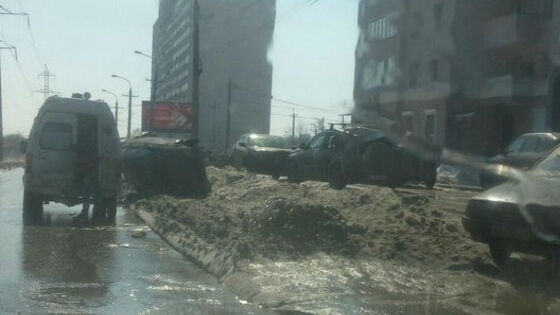 На Советской Армии Priora «легла» на бок после столкновения с иномарками