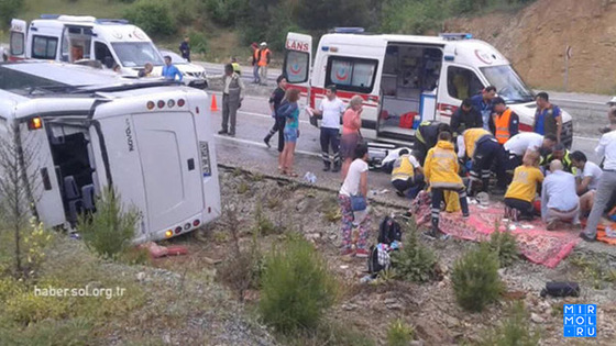 Есть жертвыПассажирский автобус Махачкала – Кисловодск перевернулся сегодня утром в 4 часа на Ставрополье, сообщает «Российская Газета». Одна из 18 пассажиров автобуса, 38-летняя дагестанка погибла на месте ДТП. Четверо из них доставлены в ЦРБ Минераловодского округа. Причина аварии невнимательность водителя, уснувшего за рулем. Транспорт выехал в кювет и перевернулся. Фото: vesti.ru