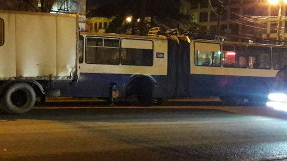 Троллейбус без колеса стал причиной восьмибалльных пробок этим вечером