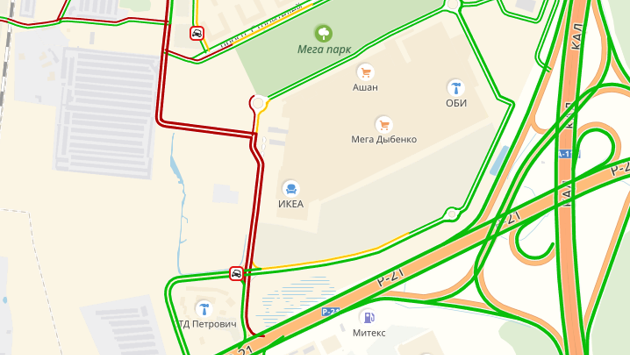 Единственный узкий подъезд к торгово-развлекательному комплексу "Мега Дыбенко" в Кудрово оказался заблокирован днём 31 марта. Как сообщают автолюбители и очевидцы, пробка, больше характерная для центра Петербурга в час-пик, образовалась из-за целой серии небольших аварий. Всё началось около 14:30, когда две легковушки не смогли решить, кто кого пропускает. В итоге заезд на парковку оказался частично блокирован. Затем прямо на съезде с Мурманского шоссе зацепились "Фольксваген" и "Шкода". Транспортную ситуацию на развязках Кудрово осложнили ДТП на улице Центральной и проспекте Строителей. По данным сервиса "Яндекс.Пробки" длина затора по состоянию на 15:40 составляет 4,5 километра. Желающим посетить "Мегу Дыбенко" приходится передвигаться в сторону ТРК со скоростью менее 10 км\ч.