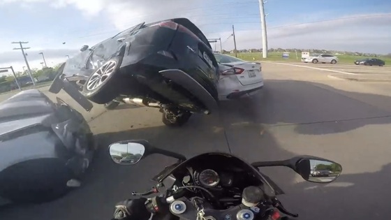 Везучий мотоциклист чудом уцелел с серьезном ДТП в США. Видео
