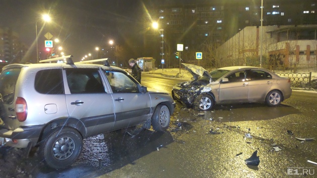 Сегодня поздно вечером на перекрестке улиц Готвальда и Одинарки друг в друга влетели две машины, Mitsubishi Lancer и Chevrole Niva. От удара передние части обеих машин оказались полностью разбиты. Водители автомобилей спорят, кто виноват. Водитель Mitsubishi рассказал Е1.RU, что ехал по Готвальда, а, когда все машины остановились, пропуская его, он начал поворачивать на улицу Одинарку. И в этот момент на перекресток вылетел Chevrole. Но у второго участника ДТП другое мнение, он говорит, что ехал на свой зеленый свет, и Mitsubishi ему не уступил. Выяснить самостоятельно, кто все-таки виноват, они не смогли. Поэтому вызвали независимую экспертизу. А окончательное решение уже будут принимать в ГИБДД.