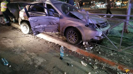 Авария произошла поздно ночью 2 апреля на пересечении улиц Ипподромская и Военная, сообщает «АСТ-54». «Летчик» на седане Nissan Skyline мчался по Ипподромской и решил проскочить перекресток, несмотря на красный сигнал светофора. В это время по Военной ехал на свой зеленый сигнал Daewoo Lacetti. В результате хэтчбек получил сильнейший удар в переднюю пассажирскую дверь и налетел на придорожный забор, распоровший машину до переднего колеса. Nissan, в свою очередь, «припарковался» о столб. По предварительной информации, с места ДТП госпитализированы три человека. Одну из них, пассажирку Lacetti 1979 года рождения, врачи увезли в состоянии средней тяжести. Как утверждают очевидцы, водитель Skyline был пьян. Несколько дней назад в схожих обстоятельствах также пострадали три человека. Виновник аварии, отмечая алкоголем рождение ребенка, не справился с управлением старого Mitsubishi Lancer и протаранил «Волгу» и «Калину».