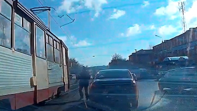 В Челябинске пассажир трамвая, проспавший свою остановку, дёрнул тумблер аварийного открывания двери и выскочил на проезжую часть. Инцидент попал на видео. Инцидент произошёл за перекрёстком проспекта Победы и Свердловского проспекта на пути в сторону Теплотехнического института. На записи с видеорегистратора, видно, как мужчина, шатаясь, вышел прямо перед машиной. Автомобилист успел затормозить в последний момент. Вышел из вагона перед машиной Как сообщили в «ЧелябГЭТ», мужчина, проснувшись, понял, что проехал свою остановку и начал ругаться матом и требовать дать ему выйти. Кондуктор и водитель объяснили ему, что вагон не может остановиться, где попало, но тот не хотел ничего слушать. — Мужчина дёрнул тумблер аварийного открывания двери, вагоновожатый начал снижать скорость, — рассказали в «ЧелябГЭТ». Как объяснили водители трамваев, тумблер аварийного открывания двери работает без применения торможения, и мужчине просто повезло, что вагон не набрал скорость. Будут ли нарушителя привлекать к ответственности за хулиганство, в «Горэлектротрансе» ответить затруднились.