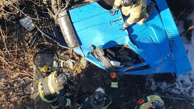 «КамАз» не справился с управлением и рухнул с моста в овраг в Оренбурге. Шофер большегруза получил не совместимые с жизнью травмы и погиб на месте. Об этом сообщили «360» в управлении МВД России по Оренбургской области. Сообщается, что в результате падения повредилась цистерна с пропаном. В данный момент сотрудники МЧС устраняют последствия происшествия. Источник фото: МЧС России Сотрудники дорожной полиции ограничили движение на трассе. Источник фото: МЧС России