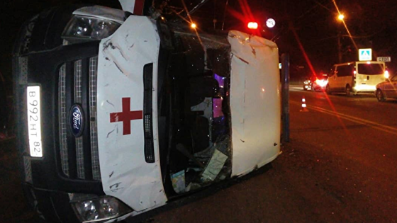 "Скорая" на боку и разбитый джип: ночное ДТП в центре Симферополя