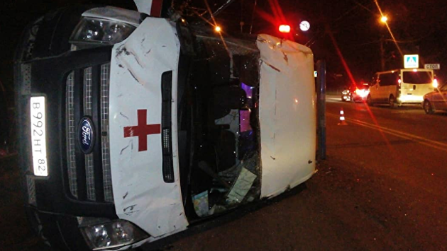 СИМФЕРОПОЛЬ, 15 апр — РИА Новости Крым. В крымской столице в ночь с субботы на воскресенье произошла авария с участием машины скорой медицинской помощи и джипа Honda. Об этом сообщают очевидцы на одном из автофорумов. По информации пользователей соцсетей, инцидент произошел около полуночи на перекрестке улиц Киевской и Толстого.