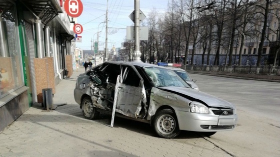 На перекрестке Пушкина и Компроса столкнулись автобус и Priora. Пассажир легковушки госпитализирован