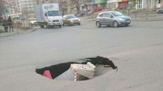 Дорожное ограждение, выставленное вокруг ямы в в Тракторозаводском районе Челябинска, провалилось под землю. Автомобилисты наблюдают, как на фоне бездействия дорожников дыра в асфальте увеличивается день ото дня, сообщает корреспондент «АиФ-Челябинск». Глубокая яма образовалась после схода снега на перекрёстке улиц Марченко и Салютной. По словам автомобилистов, она больше метра в диаметре и продолжает расти. Под землю уже ушло ограждение, которое выставили вокруг сотрудники компании «ЮжУралМост». Дыра в землю стала поводом для шуток среди челябинцев. «Открыли портал в другое измерение», - написали под фото в социальной сети Юлия Сизоненко. «Опять метеорит прилетал?» - удивился Дмитрий Якут-Водянов. «Наконец-то метро достроили. Ныряйте и погнали», - отметил Денис Буланов. «Люди, которые помогали весне и ели снег - сожрали и асфальт», - заметил пользователь Vladimir Flex. При этом горожане говорят, что проблемы с асфальтом есть и в других местах. «На углу дома по ул. Шуменской, 18, как раз за пятиэтажными домами, что на этом фото, тоже асфальт провалился. Уже больше месяца дыра, а воз и ныне там», - рассказала Мария Ангилевская. «У Шуменской, 31 «А» тоже провал асфальта», - добавила Татьяна Соломонова. «А на ул. Цвиллинга асфальт наоборот вздыбился», - заметила Асель Володина.