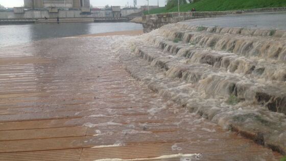 Напротив Нижнего озера на улице Пролетарская произошел прорыв водопровода. Вода течет по проезжей части и стекает по пешеходной зоне в Нижнее озеро. На проезжей части образовалась пробка. На место прорыва воды прибыли сотрудники ГИБДД и аварийные службы.