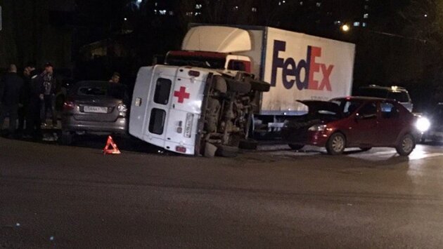 Последствия аварии попали на видео. Машина скорой помощи попала в массовое ДТП на перекрёстке улиц 45 Стрелковой Дивизии и Солнечной в 20:20 четверга, 26 апреля. Автомобиль медиков «УАЗ» перевернулся, сообщила пресс-служба управления МВД по региону. В аварии пострадала 43-летняя врач. По данным полиции, 55-летний водитель скорой, житель Хохольского района, ехал с включёнными проблесковыми маячками по улице 45 Стрелковой Дивизии со стороны улицы Антонова-Овсеенко в сторону Московского проспекта. На красный сигнал светофора водитель не уступил дорогу автомобилю «Лада Гранта» 41-летнего воронежца, двигавшегося по улице Солнечной в сторону улицы Брянской. В результате столкновения скорую отбросило на стоявший на светофоре грузовик MAN 31-летнего воронежца, а затем на автомобиль Renault Logan 61-летнего горожанина. «УАЗ» перевернулся, в ДТП пострадала его 43-летняя пассажирка. Женщину госпитализировали. Как уточнили в полиции, в скорой пациента не было. Последствия аварии попали на видео. Ролик опубликловал пользователь с ником Uma Cool в группе «Аварии|ДТП|Воронежа». Екатерина Трещикова