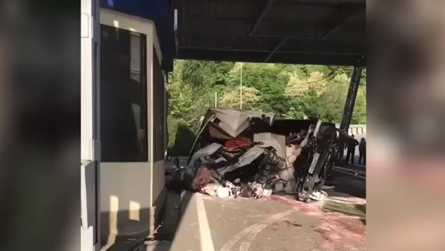 В сети размещены кадры с камер наблюдения, запечатлевших момент аварии с летальным исходом, произошедшей в ночь на субботу, 28 апреля, на дороге Джубга – Сочи в Краснодарском крае. На записи видно, что водитель фургона не справился с управлением в повороте, после чего машина завалилась на ограждение трассы, после чего опрокинулась на бок и в таком положении врезалась недействующий пост ДПС на Мамайском перевале. Как сообщалось ранее, мужчина, находившийся за рулем грузовика, перевозившего краску, от полученных травм скончался на месте.