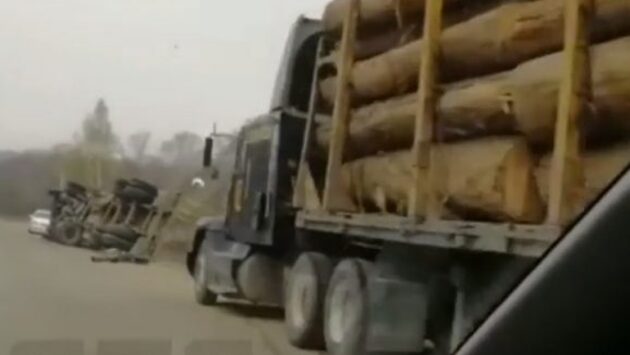 «Пункт назначения»: в Приморье на дороге перевернулся лесовоз