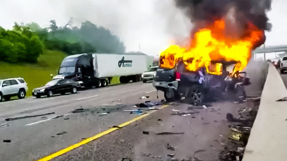 Водитель внедорожника выехал на встречную полосу многополосного шоссе и понесся навстречу своей судьбе. Как позже выяснилось, автолюбитель был сильно пьян и едва ли отдавал себе отчет о том, что делает. Автомобилисты, ехавшие в том же направлении по другой стороне дороги, снимали происходящее. В течение почти минуты внедорожник чудом избегал столкновения со встречными машинами и, казалось, что все может обойтись и водитель рано или поздно остановится, осознав происходящее. Но увы, один из автомобилей все же не увернулся от пьяного водителя и произошло страшное лобовое столкновение. Удар был столь силен, что внедорожник загорелся, а другая машина превратилась в груду смятого металла. Как ни удивительно, но пьяный водитель выжил, а вот девушка в другом авто погибла. Очевидцы происходящего пытались вытащить ее из покореженного авто, но было слишком поздно. Тот момент, когда очень жаль, что смерть забрала не того, кого стоило бы.