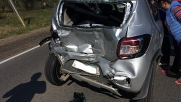 Утром 7 мая на 60-м километре дороги Калуга-Медынь грузовик DAF врезался в попутный Renault Sandero. Фото УГИБДД по Калужской области, Как сообщили в УГИБДД по Калужской области, в результате этой аварии пострадала 50-летняя женщина-водитель легковушки. Она была доставлена в Медынскую центральную районную больницу.