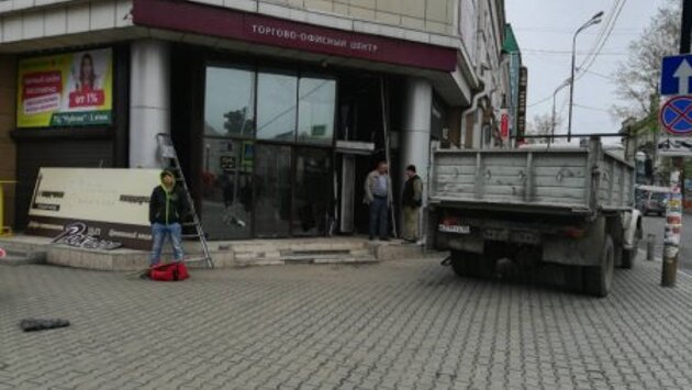 В Иркутске сотрудники ГИБДД привлекают к ответственности водителя иномарки, въехавшего в здание торгового центра
