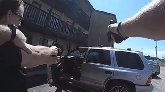 Полицейские расстреляли мужчину с пистолетом на парковке отеля в США. Видео