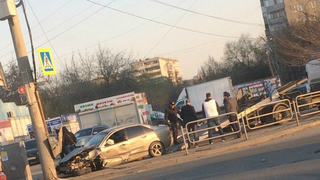 Иномарка вылетела на тротуар: у «Каширинского рынка» столкнулись два автомобиля