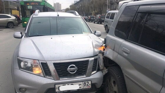 Вчера вечером в Дзержинском районе в столкновении сошлись автомобили Nissan Terrano и Mitsubishi. По информации аварийных комиссаров «Автоспас» Новосибирск, автомобили двигались в сторону улицы Королёва со стороны Красина. «Mitsubishi остановился в пробке перед светофором. Nissan двигался по правому ряду, в это время с парковки начал выезжать автомобиль, он его испугался и вильнул влево, где стоял Mitsubishi, что привело к столкновению», — рассказывают аваркомы. Водитель Nissan свою вину признал, уточняет «Автоспас». Вчера вечером в Дзержинском районе произошло тройное ДТП с участием машин марки Nissan, Toyota и LADA Kalina. В результате аварии водитель «Ниссана» был госпитализирован.