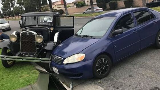 Годы не разрушили Ford Model A, а вот один невнимательный автовладелец «Тойоты» разрушил. Мужчина, зовут которого Уильям Смит, долгие годы трудился над реставрацией раритетного «Форда». И он сделал из него конфетку! Жаль, но его детище теперь почти полностью уничтожено, «благодаря» неосторожному водителю «Тойоты», который врезался в его Ford 1931 года. Смит испытал весь шок от аварии этой в пятницу. Случилось всё в Калифорнии. Известно, что женщина за рулём Toyota Corolla отвлеклась от дороги и влетела в припаркованный олдтаймер. ДТП нанесло приличный вред прекрасному «Форду», оставив Смита с изогнутой рамой и карданным валом, треснувшим дифференциалом и повреждённым корпусом коробки передач. Повреждения получили и все четыре спицованных колеса. Кстати, как сообщается, дама пыталась скрыться с места аварии. Важно, что Смит со своим отцом работали над восстановлением этой классики в течение двух лет, а вообще машина в семье их находится сорок пять лет. Теперь, похоже, им ничего не остаётся, кроме как начинать всё заново. Пожелаем энтузиастам удачи! Надеемся, что страховка покроет хотя бы часть расходов на ремонт.