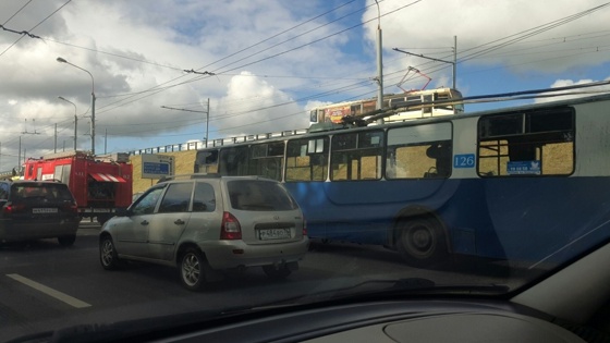 Сегодня утром в Брагино возле «Лакокраски» сгорел троллейбус. Он вспыхнул прямо на ходу. Как сообщают очевидцы, проезжающие мимо водители не растерялись и остановили свои машины, чтобы потушить троллейбус. — Видел, как загорелся. Был приятно удивлен: аж шесть машин остановились, даже джипы. Дали огнетушители, если бы не они — точно бы весь сгорел, — рассказывает очевидец Александр Серяков. В салоне троллейбуса было много пассажиров. К счастью, все они успели выскочить на улицу. По предварительной информации, пострадавших нет.