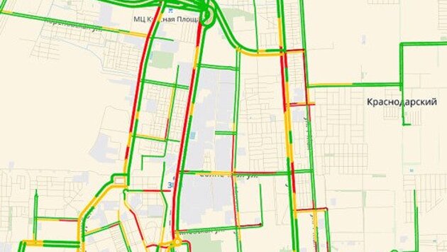 Сегодня утром сервис Яндекс.Пробки зафиксировал протяженный затор на окраине Краснодара. Пробка на Ростовском шоссе растянулась на 5,2 км вплоть до Зиповского кольца, которое сейчас реконструируют в Т-образный перекресток. Чтобы проехать ее, понадобилось, в среднем, 50 минут, это на 23 минуты больше, чем обычно в это время. Затор наблюдался и на соседней улице Офицерской. Также движение было затруднено в другой части города: по Дзержинского и Ставропольской. Медленно двигался центр по Красной.