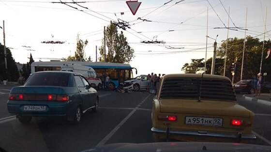 СЕВАСТОПОЛЬ, 3 июн – РИА Новости Крым. На перекрестке улиц Героев Севастополя в районе остановки Матрос Кошка в городе-герое произошло ДТП. Об этом сообщает корреспондент РИА Новости Крым. По его данным, водитель автомобиля Volkswagen Touareg столкнулся с мотоциклом. На данный момент на месте работают врачи скорой помощи, рядом с мотоциклом лежит мужчина в возрасте 30-40 лет без признаков жизни. Пока официальной информации о причинах случившегося и пострадавших нет. В результате аварии образовалась пробка, движение затруднено в сторону проспекта Победы.