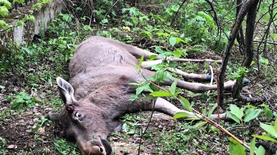 В новосибирский Академгородок забрёл тяжело раненный лось — утром 4 июня животное обнаружили очевидцы. Звонки о том, что на улице Терешковой найден травмированный лось, поступили сразу в несколько новосибирских служб, в том числе и в «Центр реабилитации хищных птиц». Информацию об обнаружении лося корреспонденту НГС подтвердили в пресс-службе ГУ МЧС по Новосибирской области и пресс-центре мэрии Новосибирска. «Лось был жив на тот момент, когда мы к нему приехали. К сожалению, очень сильно ранен. У него была сломана нога. Скорее всего, это какое-то столкновение с машиной или ещё что-то. Это был молодой лосёнок, то есть не взрослая особь, а значительно меньше — размером, наверное, с лошадь. Не знаю, что с ним произошло точно: либо он где-то сам обтесался неудачно, либо что-то другое, но их тех мест, где должны были быть рога, текла кровь», — рассказала корреспонденту НГС волонтёр «Центра реабилитации хищных птиц» Анна Романова. Как уточнила другая волонтёр этого центра Наталья Мелихова, раненый лось не только дышал, но и был в сознании и даже пытался встать. Ещё одна представитель «Центра реабилитации хищных птиц» Ольга, попросившая не называть её фамилию, пояснила, что лось лежал недалеко от здания Президиума СО РАН. Приехавшие на место специалисты профильных служб осмотрели животное и пришли к выводу, что у него не только перелом ноги, но и подозрение на переломы рёбер и позвоночника. «Они подтвердили, что животное в наших условиях вылечить невозможно. Это только, к сожалению, утилизация», — добавила волонтёр. В прошлом году неравнодушные жители Академгородка часами прочёсывали лес, чтобы найти другого раненого лося — его сбила машина, а после ДТП он убежал, не дождавшись помощи.