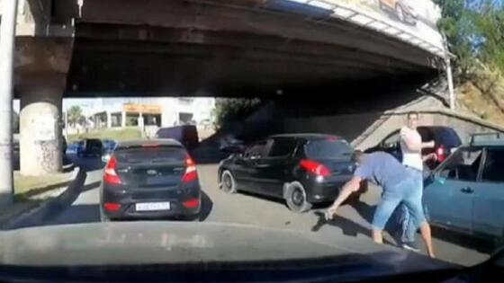 Нежелание пропускать перестраивавшегося водителя обернулось для жителя Симферополя нокаутом. Камера регистратора запечатлела дорожный конфликт, произошедший около шести часов вечера 8 июня на улице Бела Куна.