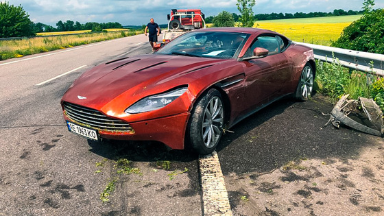 Владелец спешил в аэропорт и разбил суперкар Aston Martin DB11, но оставил послание под лобовым стеклом. Элитная иномарка получила не слишком серьезные повреждения, но самое интересное – не его кондиция, а тот факт, что владельца на месте не оказалось. Впрочем, автомобиль брошен "наполовину": в пояснительной записке к происшествию, лежащей под лобовым стеклом, хозяин объясняет, что торопился в аэропорт, все живы, а эвакуатор уже выехал и вопросы по факту аварии будут урегулированы потом. Такой вот холодный душ для желавших "усыновить" брошенный спорткар или открутить от него деталюшку на память.
