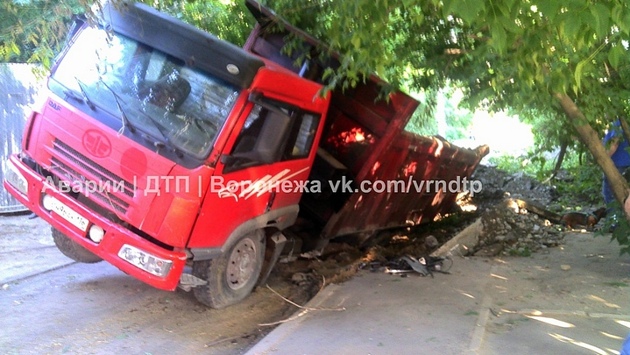 Грузовик со щебнем опрокинулся в воронежском дворе
