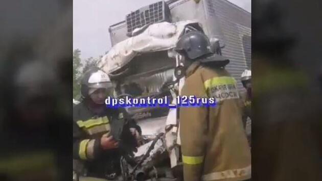 Серьезное дорожно‐транспортное происшествие произошло на трассе в районе Михайловки в Приморском крае: столкнулись две фуры. У одной из большегрузных машин кабина буквально смята. Об этом сообщило РИА VladNews. На месте столкновения большегрузов работают сотрудники полиции и МЧС. Приехали пожарная машина и скорая помощь. О состоянии водителя фуры не сообщается. Во Владивостоке неверный маневр водителя легковушки спровоцировал массовую аварию. В результате на проспекте Красного Знамени образовалась большая пробка.
