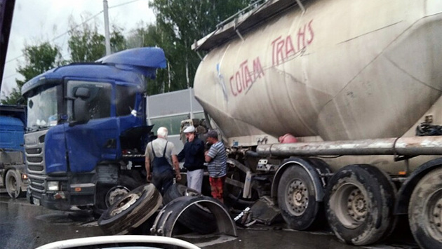 Пять фур устроили три ДТП: пробки и отлетевшие колеса