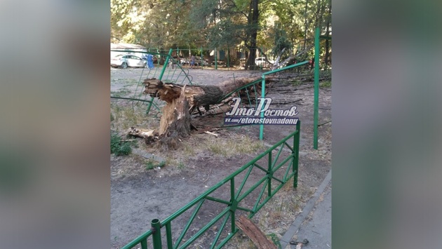 Жители считают, что дерево уже давно надо было убрать Трагедия едва не случилась в донской столице. Прямо на детскую площадку рухнуло дерево. Об этом сообщила Ирина Валькова - жительница жилого дома, во дворе которого это произошло. — Дерево совершенно сухое. Жители домой писали заявление о просьбе спилить его, но ничего не было принято. А ведь могли погибнуть дети, — рассказала женщина. По ее словам, дети не пострадали только потому, что из-за жары не вышли на площадку. Ранее в Ростове во дворе жилого дома на улице Новаторов старый тополь упал на припаркованные автомобили. Повреждено оказалось пять машин. Владельцы авто надеются, что ущерб им возместит управляющая компания, на чьем балансе находилось дерево.