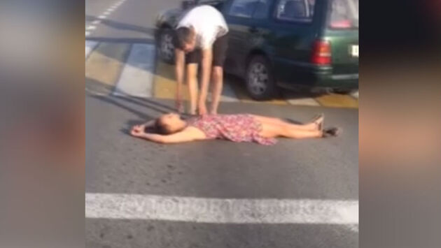 «Я - аварийный знак!». После ДТП девушка улеглась посреди дороги