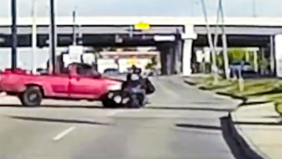 Этот ролик озаглавлен так благодаря исключительному везению мотоциклиста, который попал в серьезную аварию в США. Инцидент был заснят видеорегистратором. Наролике видно, что неправ в ДТП водитель красного пикапа: он выехал наперерез мотоциклисту, ехавшему по главной дороге, и сбил его. От удара пилот мотоцикла перелетел через руль и с силой ударился об асфальт. Везение его заключается не только в том, что он не получил смертельных травм, но и в том, что рядом оказались сразу cкорая помощь, полиция и пожарная команда. Об этом рассказал очевидец ДТП. Медики перекусывали в Subway прямо у места аварии и сразу же пришли на помощь. Примечательно, что пассажиры пикапа на протяжении всего видео так и не вышли из машины. Вероятно, они чертовски напугались, что убили человека.