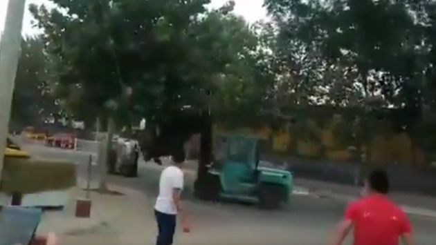Ранним утром 25 июня жители города Яньтай, который находится в восточной части Китая, наблюдали за гоняющим по улицам вилочным погрузчиком, нарочно сбивающим людей и таранящим машины. За рулем спецтехники сидел 45-летний мужчина. Вначале он врезался в несколько автомобилей на перекрестке, а затем поехал сбивать людей и крушить все подряд. Водитель погрузчика старался причинить как можно больше вреда и специально целился в прохожих, выбирая наиболее плотные скопления людей, а также сбивая и тараня припаркованные автомобили. В итоге стражам закона пришлось застрелить неадекватного водителя погрузчика, от действий которого погиб один человек, а более десяти местных жителей получили ранения. Также было повреждено несколько автомобилей. В настоящее время последствия разрушительного заезда ликвидированы. Местные СМИ полагают, что водитель погрузчика повредился рассудком, что и явилось причиной его безумного поступка.